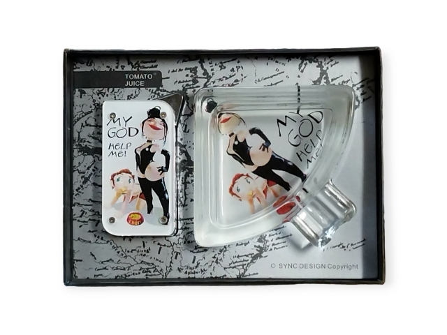 Αρίστης ποιότητας Σέτ γυάλινο ΣταχτοδοχείοTOMATO MYGOD HELP ME Γερμανίας με μεταλλικό αναπτήρα σε πολλά ωραία καί όμορφα σχέδια καί χρώματα.