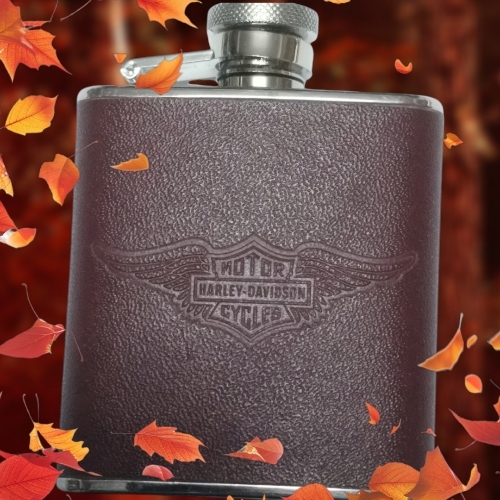 Φλασκί ποτού της Harley Davidson 85ml από ανοξείδωτο ατσάλι leather. Διαθέτει πώμα ασφαλείας. Χωρητικότητα: 85 ml, 5oz