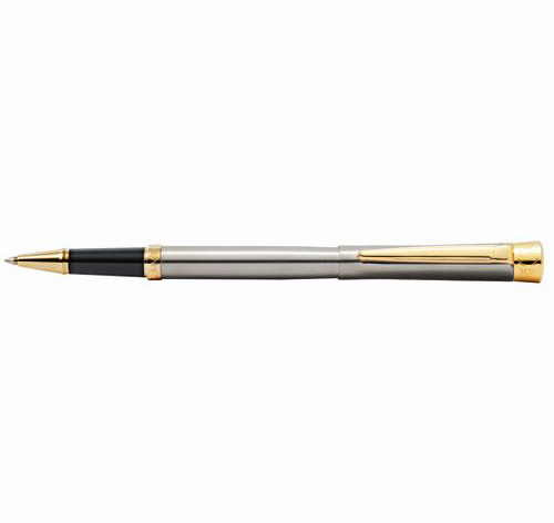 Alain Delon Echo 6618 Stainless Steel Gold Trim Cap on Rollerball Pen
